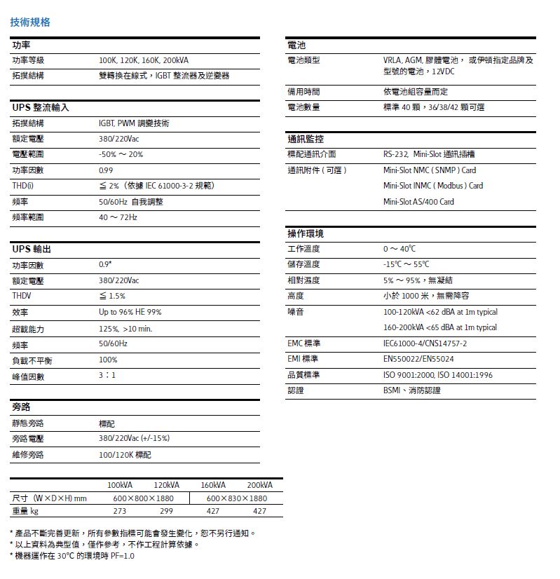 - 雙變換在線式技術,提供穩定可靠穩定的電源輸出