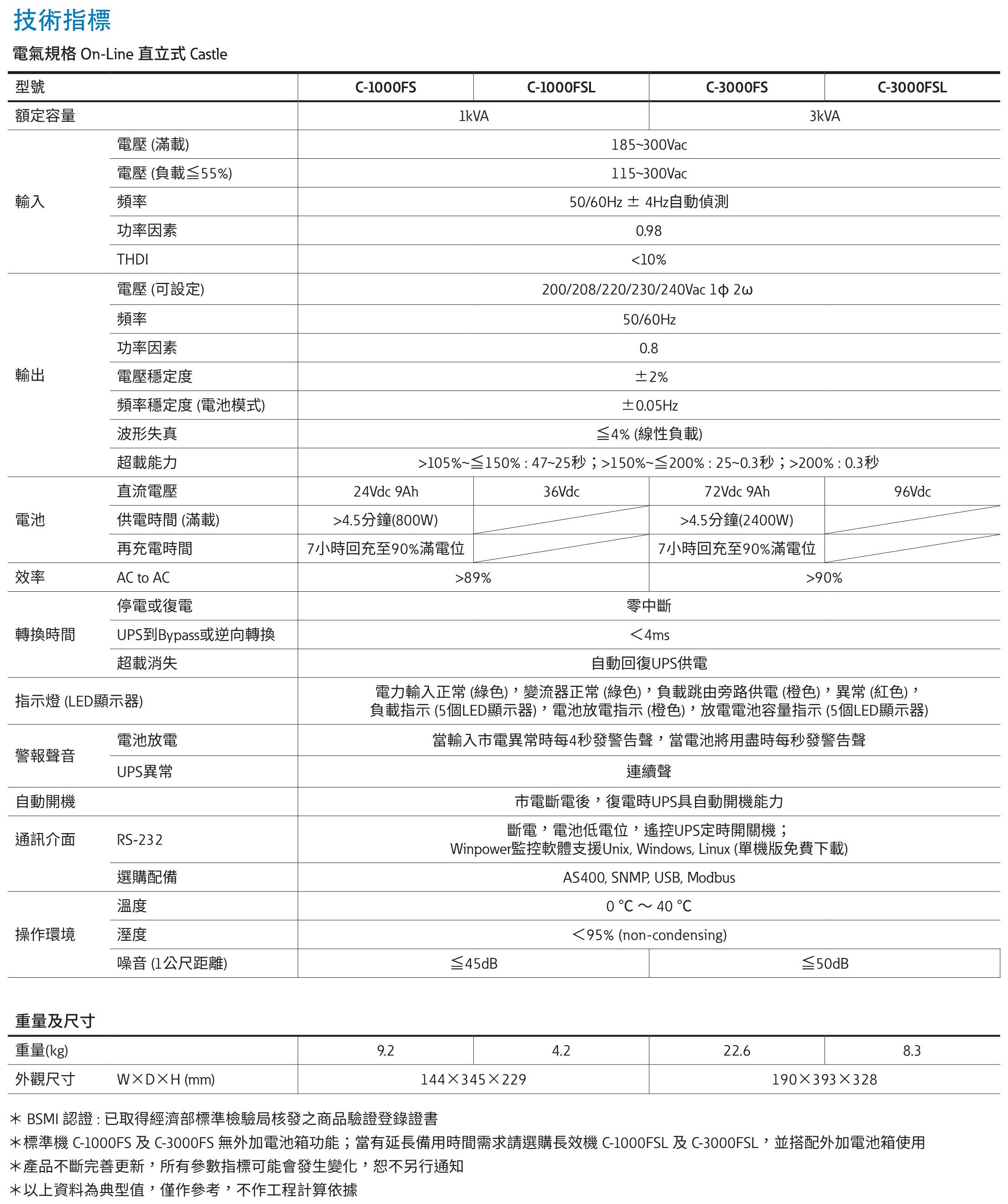 - 寬輸入電壓及頻率範圍,輸出相容性強,極寬的輸入電壓及頻率輸入範圍,即使在電力環境非常惡劣的地區也能正常供電,減少電池放電次數,提高電池的使用壽命。