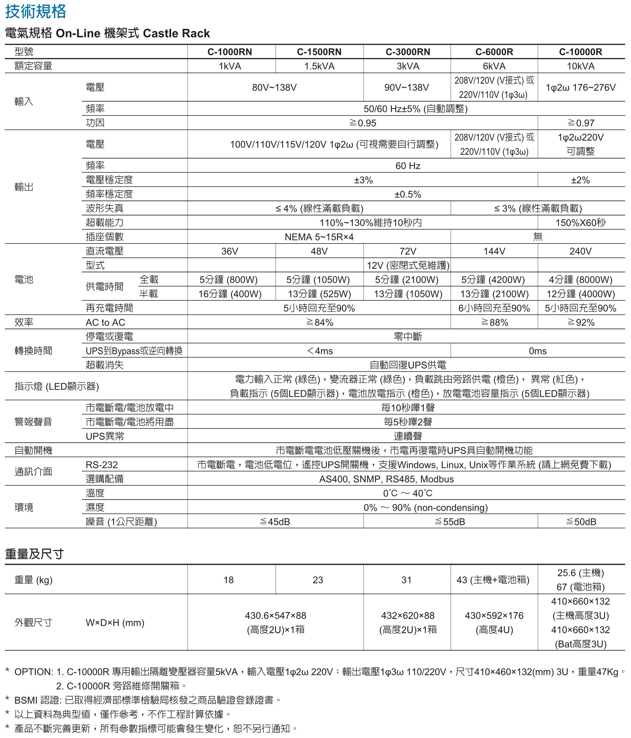 - 額定電壓:110V(1~3k)、220V(6/10k)