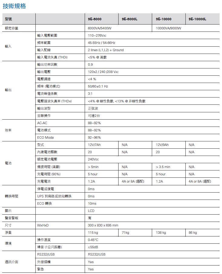 • 在線雙轉換設計,適應各種嚴苛的用電環境