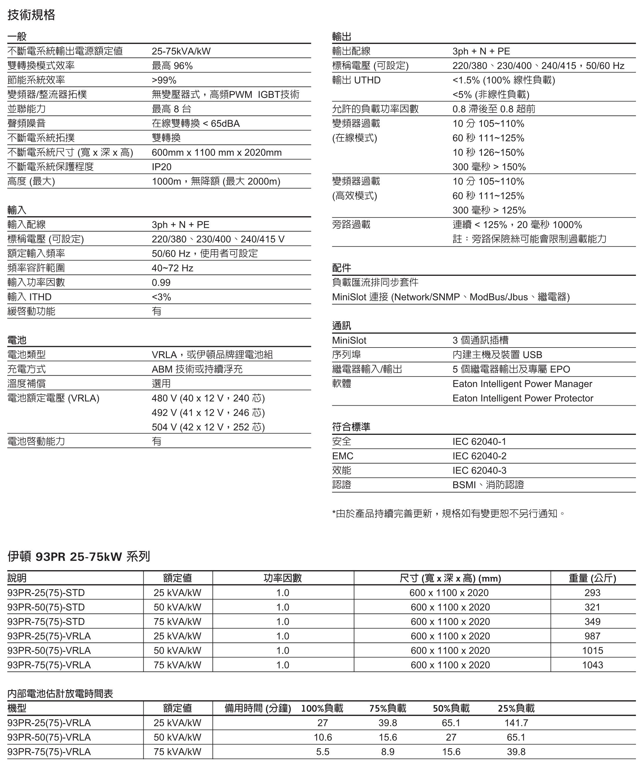 - 雙轉換模式下效率最高可達 96%,大幅節省營運成本