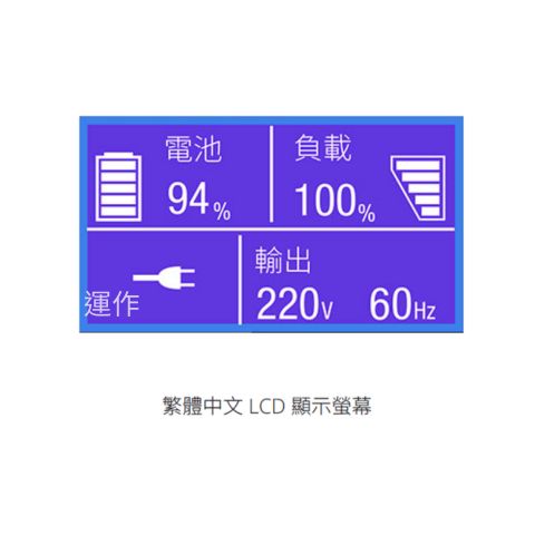 • 在線式雙轉換架構 (高效 94%),可調節輸入電源,完美正弦波輸出